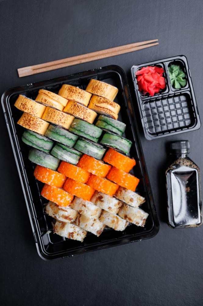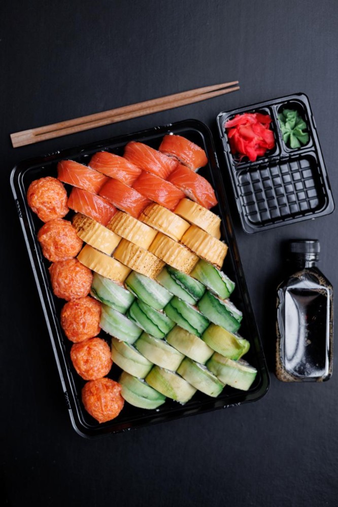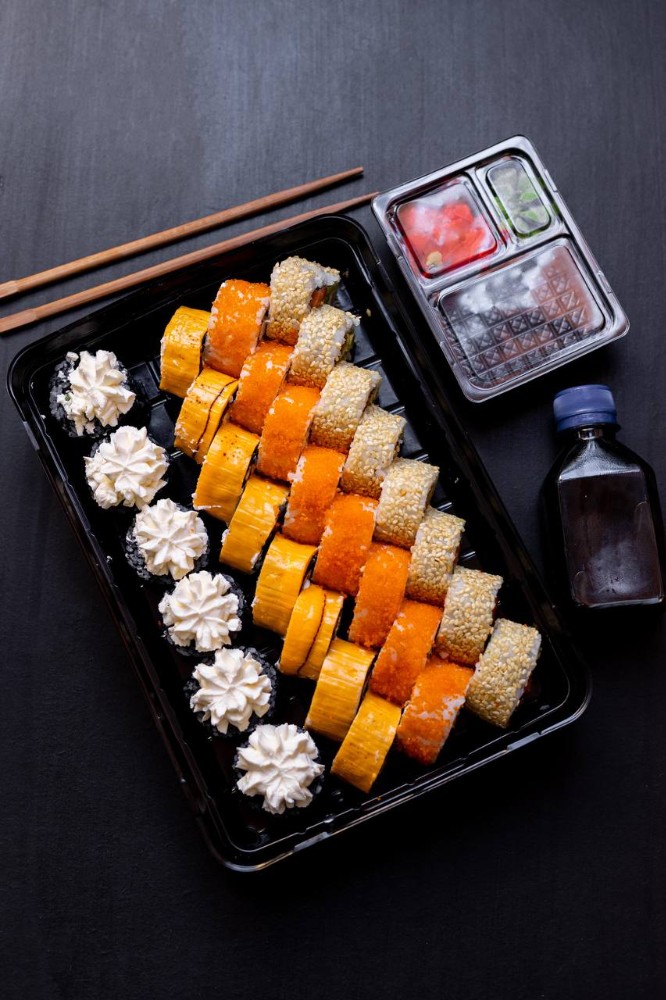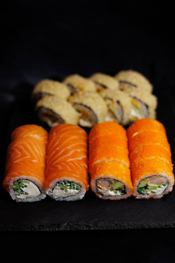 Філадельфія класична, Боніто зі смаженим лососем, Чедер з грушою, Філадельфія зі свіжим лососем в кунжуті, Блек каліфорнія з крабом